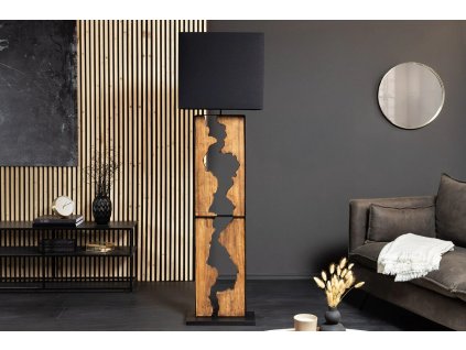 Štýlová prírodná stojaca lampa Barracuda 177cm čierna