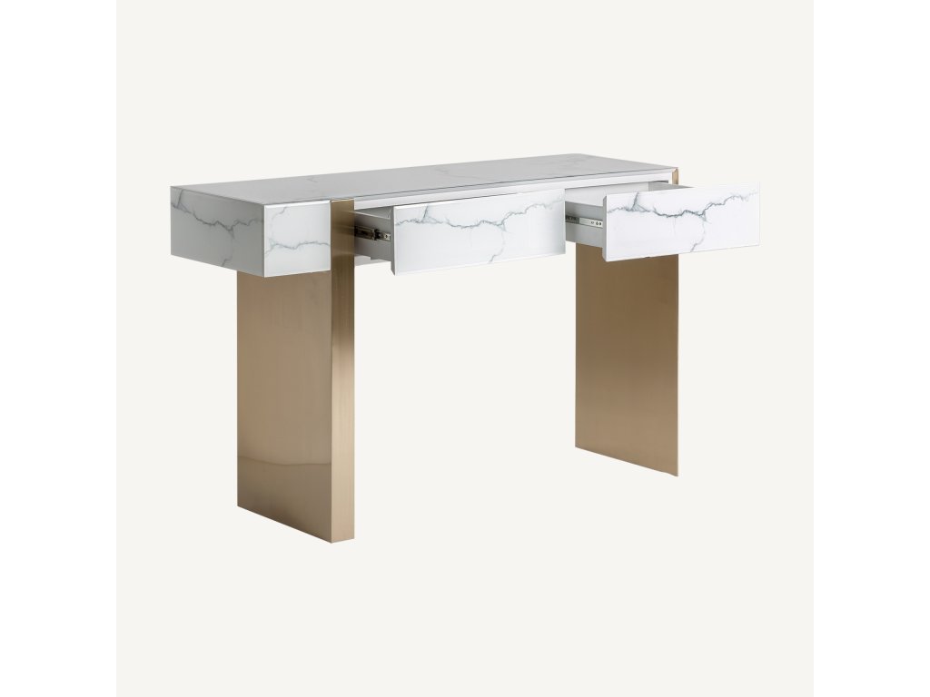 Luxusný toaletný stolík Brujo 128 cm biely mramor/zlatá Art Deco štýl