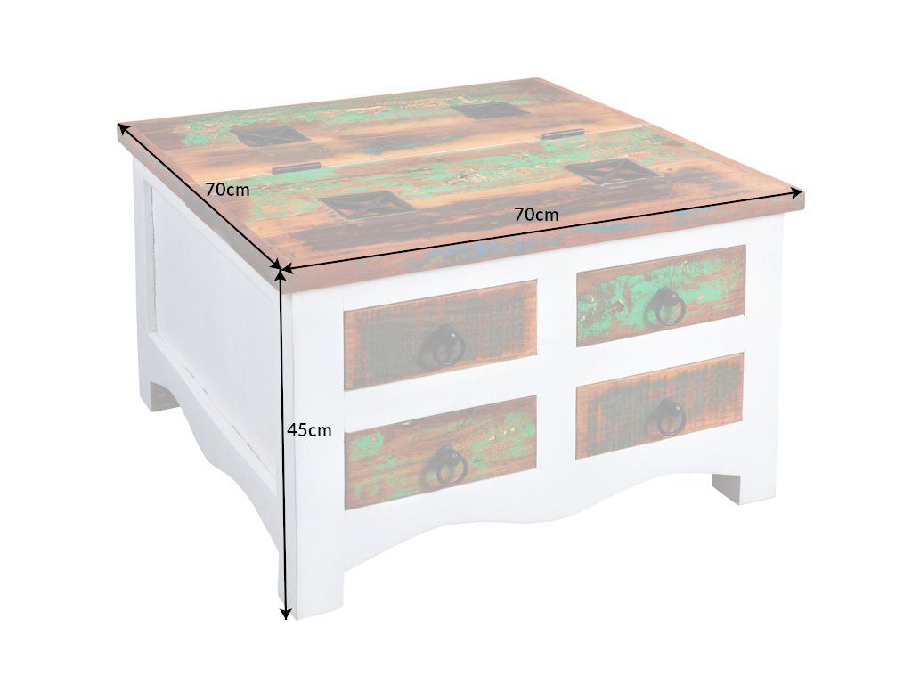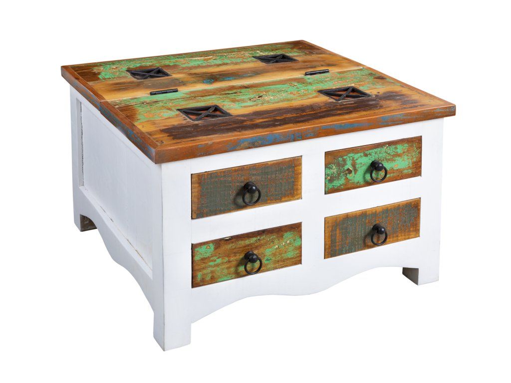 Štvorcový konferenčný stolík Jakarta je ručne vyrobený z masívneho dreva. Svoje miesto zaujme najmä v moderne aj provencie zariadených domácnostiach, ktorým dodá osobitosť a nádych chaosu. Stolík poskytuje vnútorný úložný priestor vyklopením dosky.