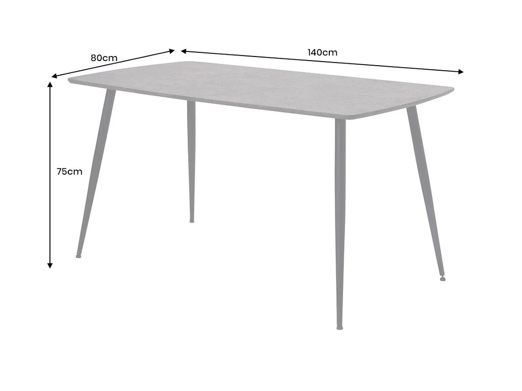 Moderný jedálenský stôl Arana prináša do interiéru výrazný industriálny štýl v kombinácii šedej dosky s kamenným efektom a pevného čierneho kovového rámu. Doska z MDF s kamennou dyhou pôsobí elegantne a zároveň je praktická na údržbu. Vďaka rozmeru 140 × 80 cm ponúka dostatok priestoru na rodinné večere, kávu s priateľmi i väčšie stretnutie. Stabilná kovová konštrukcia zaisťuje pevnosť a dlhú životnosť. Jedálenský stôl Arana je ideálnou voľbou pre moderné, industriálne a minimalistické interiéry.