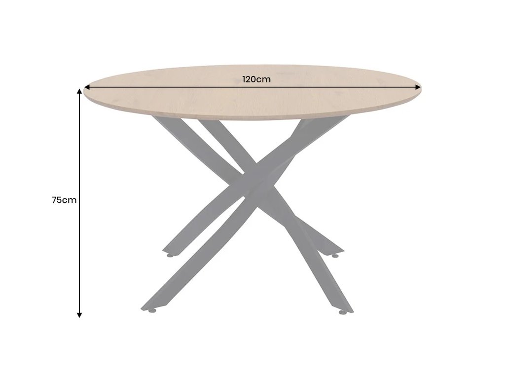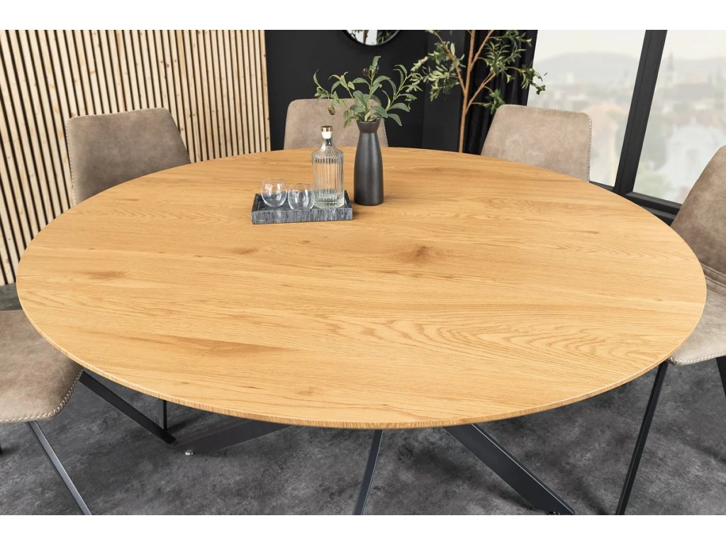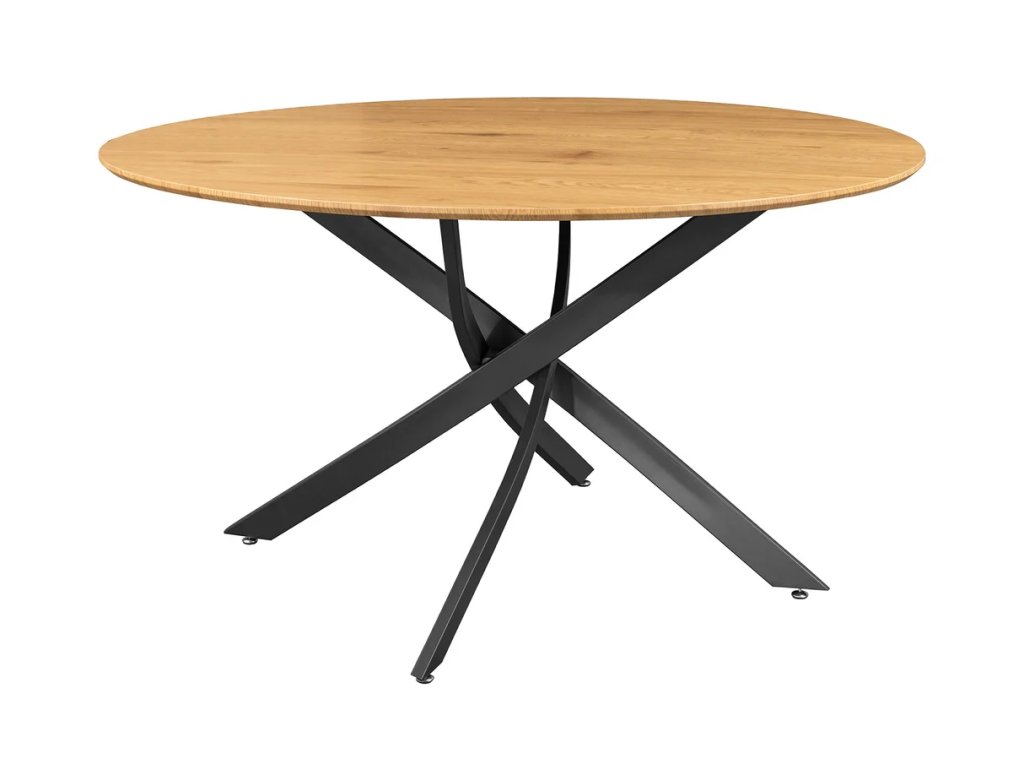 Dizajnový okrúhly jedálenský stôl Arana spája prirodzený vzhľad divokého duba s moderným industriálnym dizajnom. Doska z MDF s pravou dyhou z divokého duba vyniká výraznou kresbou dreva a dodáva interiéru teplo a charakter. Pevná čierna kovová konštrukcia zaisťuje stabilitu a dlhú životnosť. Okrúhly tvar stola s priemerom 120 cm vytvára ideálny priestor pre rodinné večere, neformálne posedenie aj slávnostné stretnutie s priateľmi. Jedálenský stôl Arana sa skvele hodí do moderných, industriálnych aj prírodne ladených interiérov.
