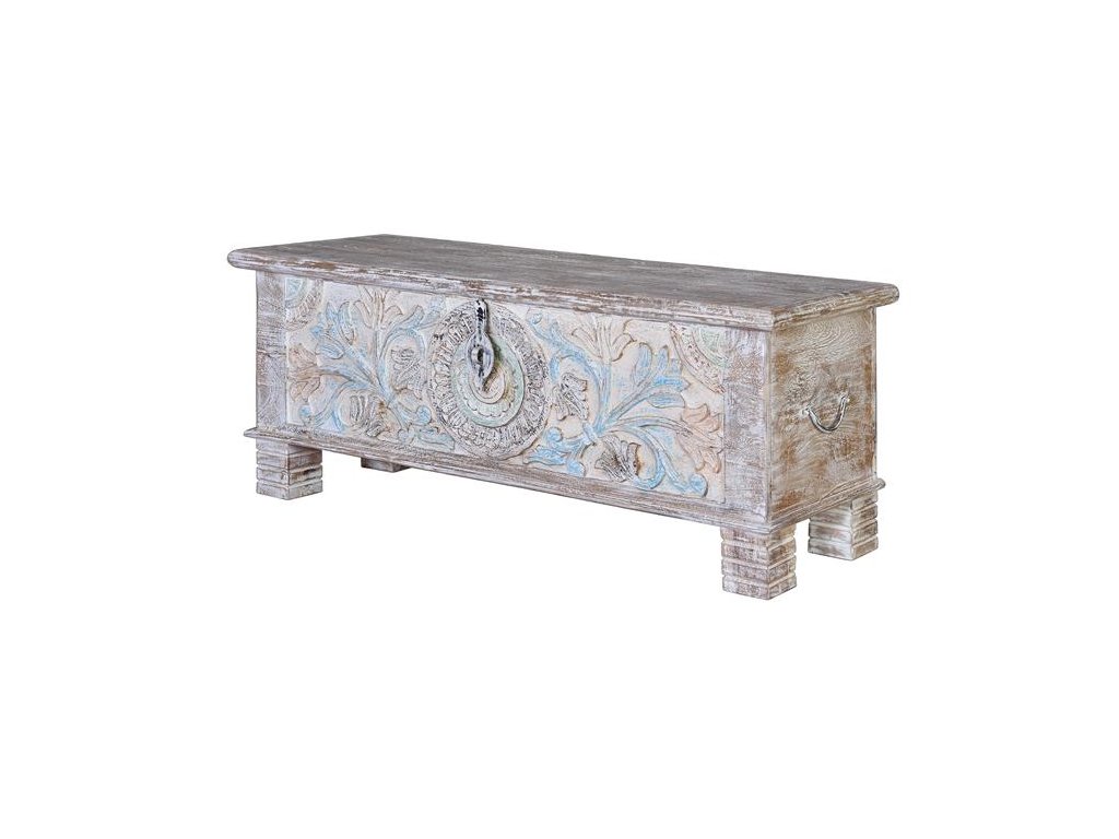 Truhla Giselle je nádherným príkladom tradičného remeselného spracovania s dôrazom na orientálny dizajn. Vyrobená z kvalitného mangového dreva, zaujme svojím masívnym prevedením a detailnou ručnou rezbou, ktorá dodáva každému kusu jedinečný charakter. Vintage vzhľad v kombinácii s bohatými ornamentálnymi prvkami pôsobí elegantne a nadčasovo. Tento kúsok je ideálny ako praktický úložný priestor aj ako dekoratívny prvok do interiérov s orientálnym alebo bohémskym nádychom. Truhla Giselle vnesie do vášho domova teplo, originalitu a umelecký štýl.
