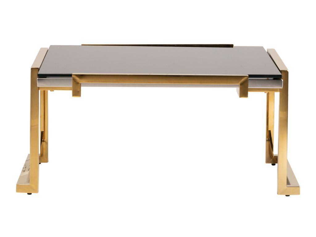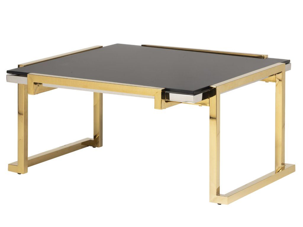 Tento štvorcový konferenčný stolík z modernej dizajnovej kolekcie Lexi vás na prvý pohľad upúta predovšetkým svojim elegantným spracovaním. Čiernu sklenenú dosku nápadito dopĺňa pozlátená podstava z nerezovej ocele. Vďaka jednoduchému prevedeniu je ľahké stolík zakomponovať medzi existujúci nábytok.