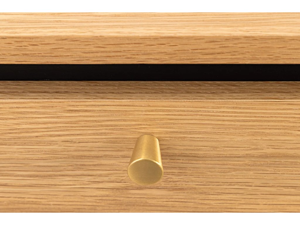 Konferenčný stolík Luminia kombinuje teplo prírodného duba s elegantnými čiernymi kovovými a mosadznými akcentmi a vytvára štýlový a funkčný ústredný prvok. Vďaka šikovnému úložnému priestoru a robustnému dizajnu je ideálny na udržanie poriadku a elegancie vo vašej obývačke.
