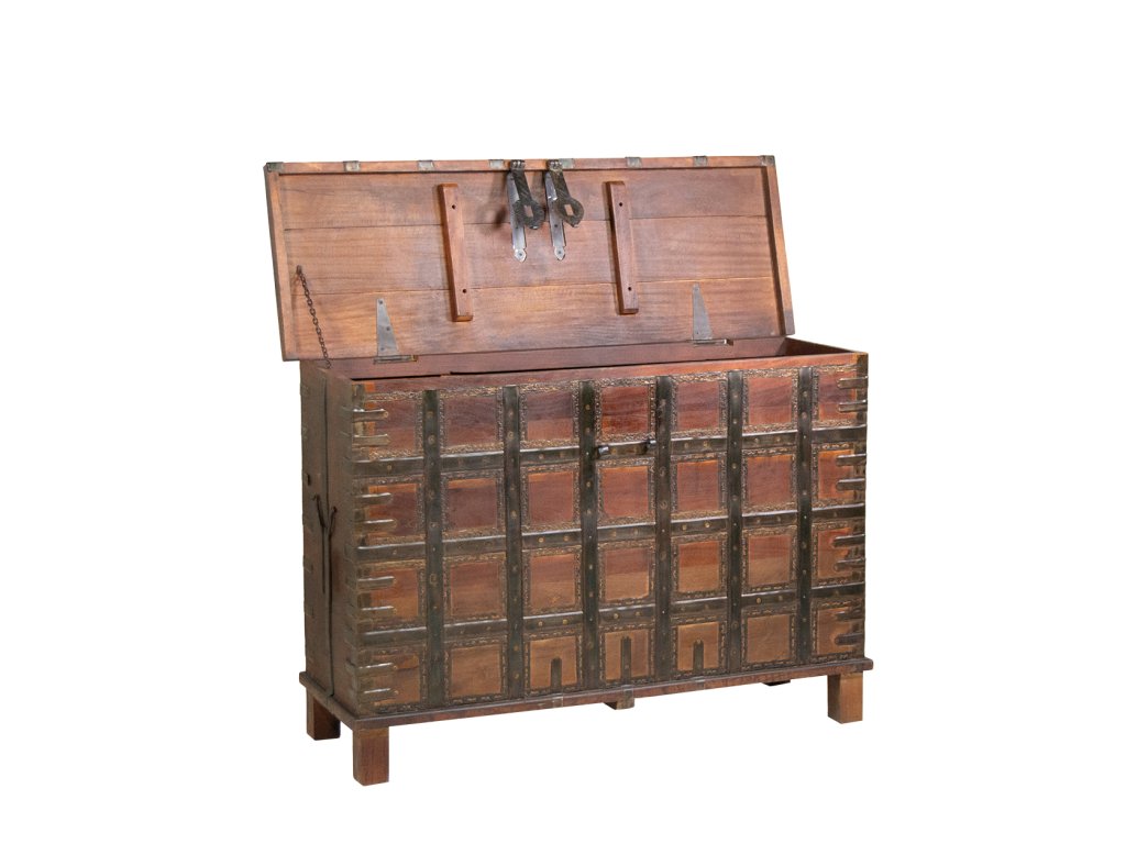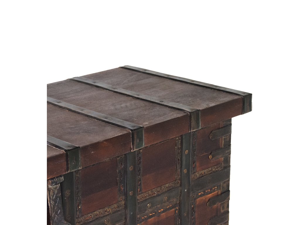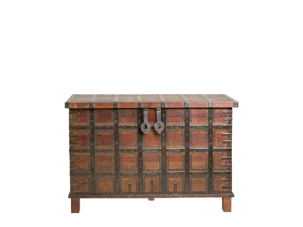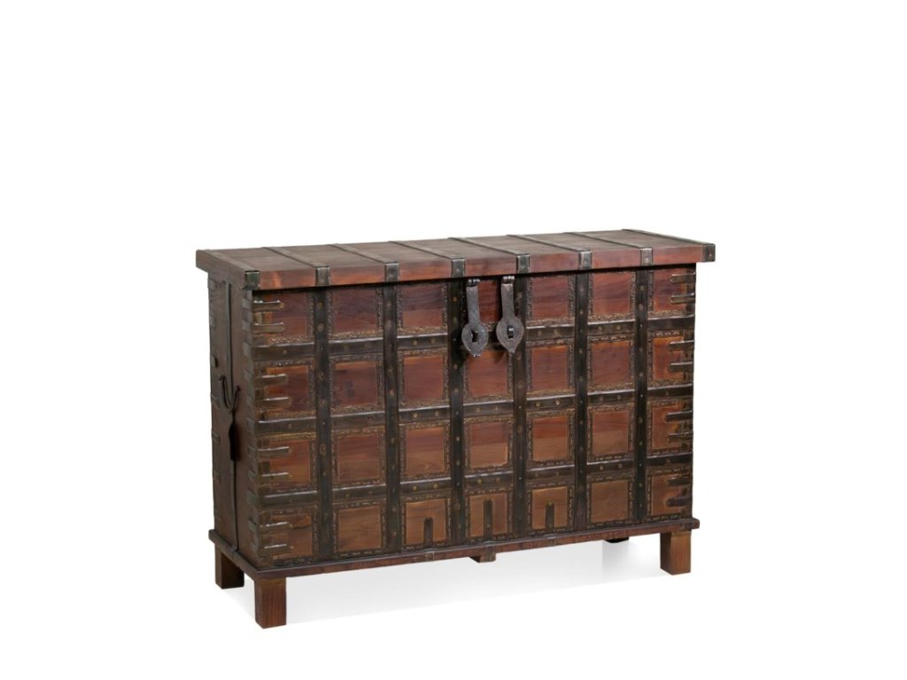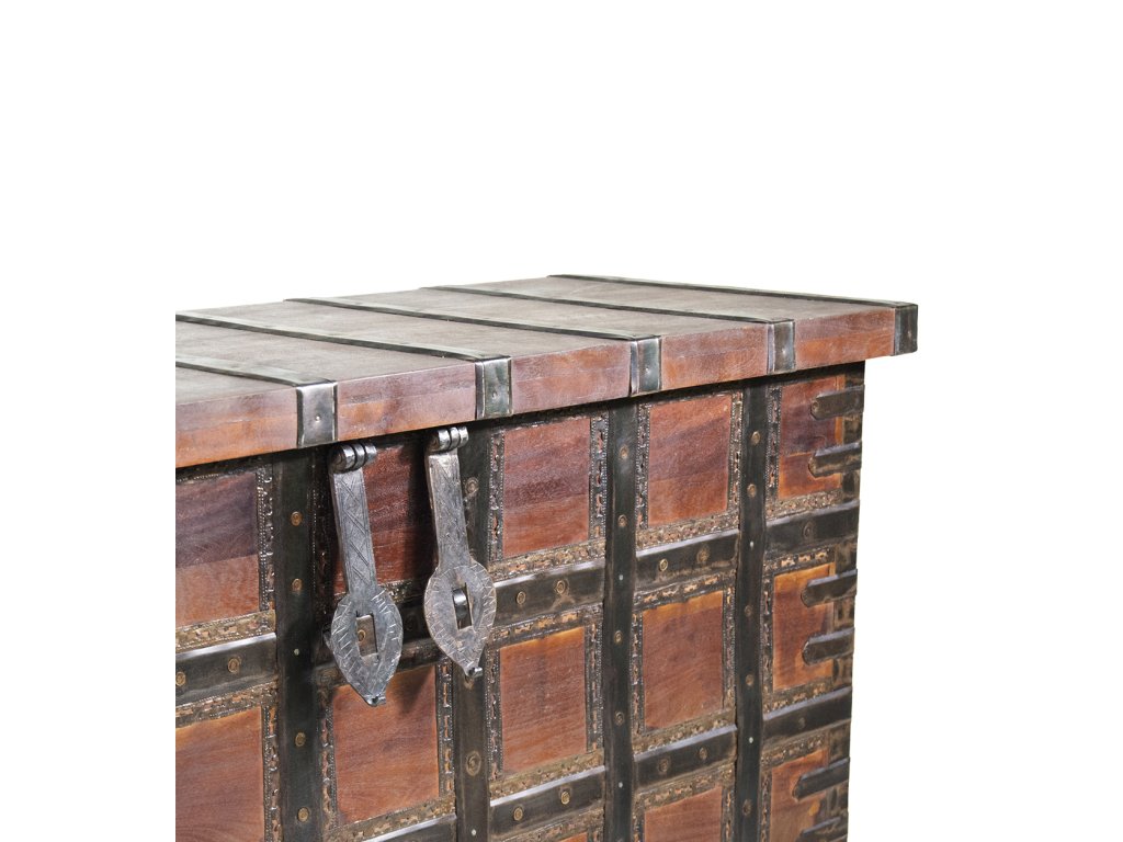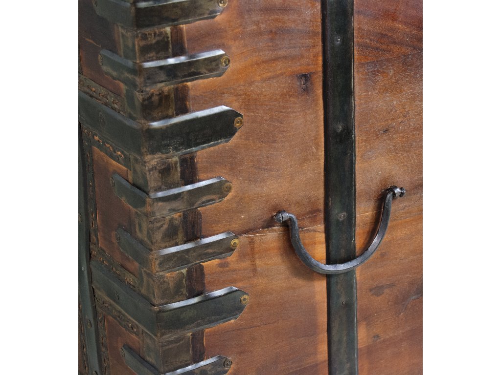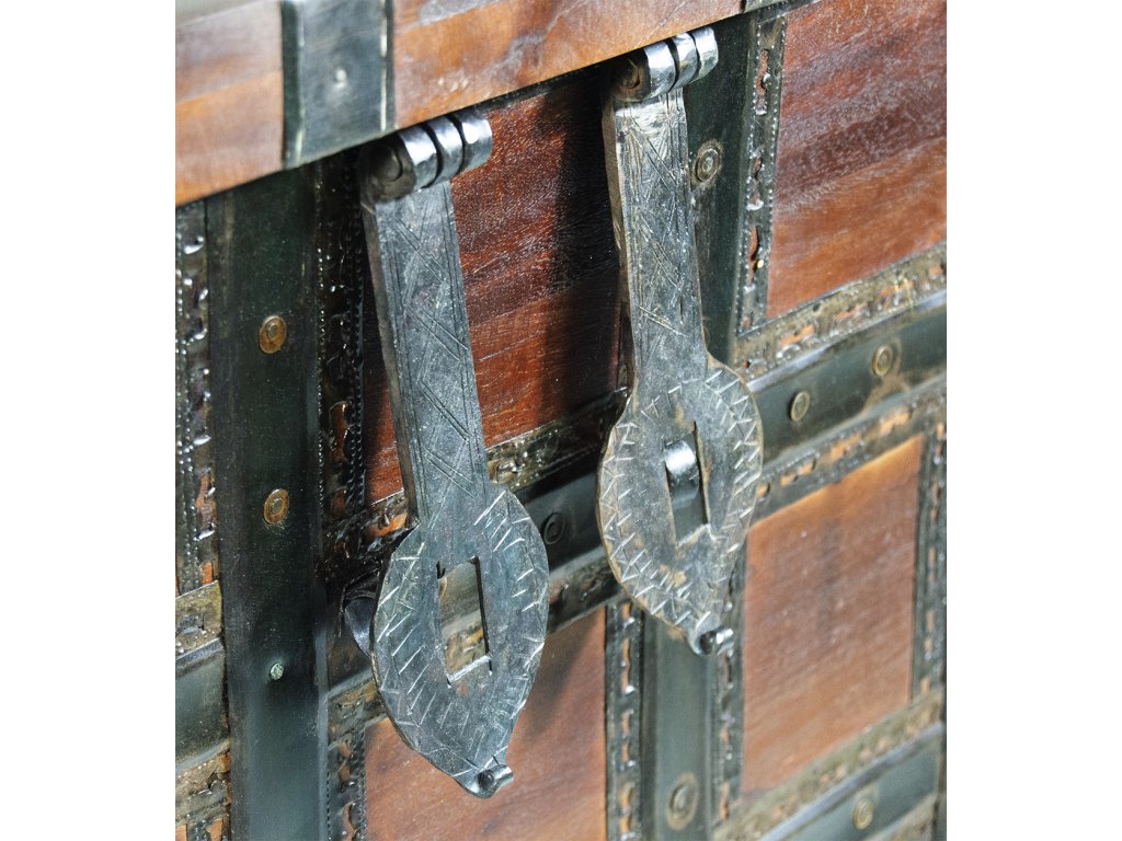 Truhla Alhambra je originálnou kombináciou recyklovaného dreva a kovových detailov, ručne spracovaných do unikátneho designu. Každý kus je jedinečný – vďaka ručnej výrobe môžu mať farba aj detaily jemné odchýlky.