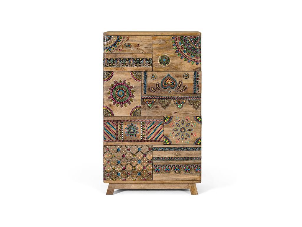 Stýlova barevná komoda Velena z mangového dřeva – ručně malovaná