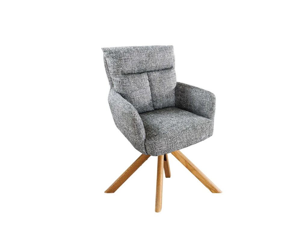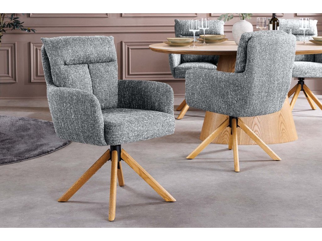 Stylová otočná židle Big Gina Oak přináší harmonii moderní estetiky, přírodních materiálů a každodenního komfortu. Otočný sedák s funkcí automatického návratu zajišťuje plynulý a vyvážený pohyb, zatímco čalounění z texturované látky v šedém odstínu dodává interiéru sofistikovaný vzhled. Masivní dubové nohy podtrhují přirozený charakter židle a zajišťují stabilitu. Díky pohodlnému tvarování, područkám a ideálním proporcím je Big Gina Oak vhodná jako jídelní židle, křesílko do obývacího pokoje i stylová židle do domácí kanceláře.