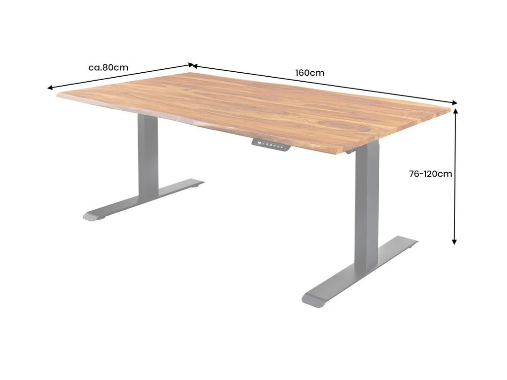 Deska o délce 160 cm a tloušťce 25 mm je vyrobena z vysoce kvalitního masivního sheeshamového dřeva, které je ceněno pro svou pevnost, dlouhou životnost a jedinečnou kresbu. Každý kus je originál s přirozenou strukturou a odstíny dřeva, což dodává prostoru autentický a luxusní charakter. Stolová deska je dodávána bez podnoží, takže si zákazník může vybrat vlastní design nohou a přizpůsobit tak výsledný vzhled i funkčnost stolu svým potřebám. Možnost nastavení výšky ještě více zvyšuje univerzálnost tohoto modelu.
