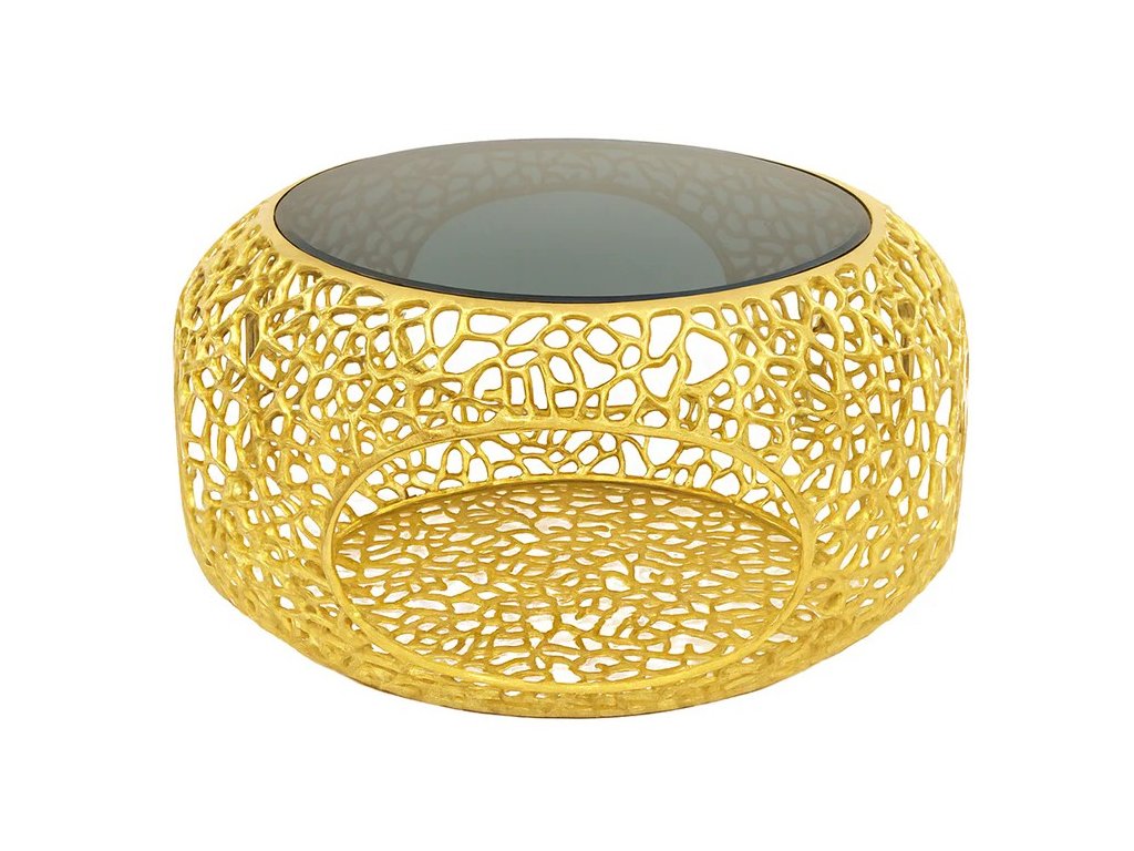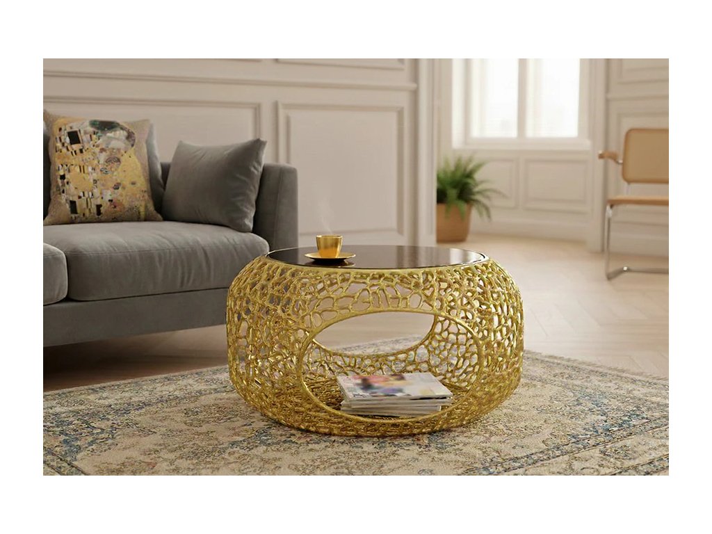 Luxusní kulatý Art-Deco konferenční stolek Sambhal 70cm s mramorovou deskou