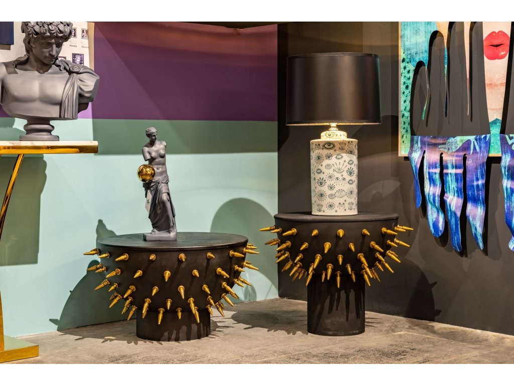 Stylový konferenční stolek Sting z designové kolekce Pop Art se bude dokonale vyjímat v každém interiéru, kde si potrpí na nevšední design. Elegantně tvarované tělo s kruhovou deskou je originálně vyzdobeno řadou kovových bodců, které celkovému provedení dodávají šmrnc.