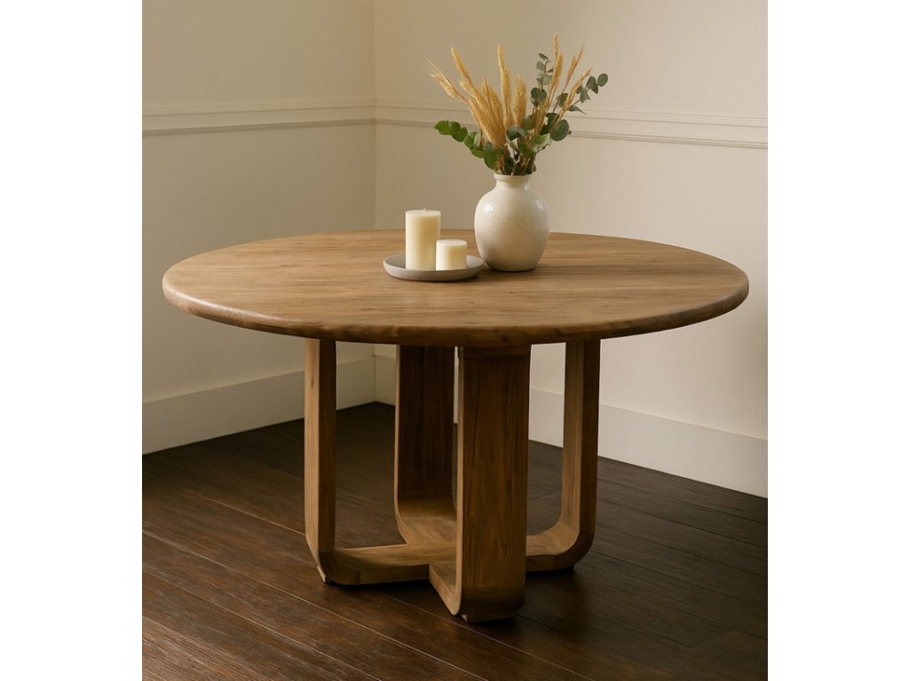 Kulatý jídelní stůl Atlas je vyrobený z recyklovaného teakového dřeva, které se vyznačuje vysokou odolností a krásnou přírodní kresbou. Každý kus je originál – dřevo může mít jemné rozdíly v odstínu, struktuře nebo patině, což dodává stolu autentický charakter. Jednoduchý, nadčasový design umožní snadné kombinování s různými interiérovými styly.
