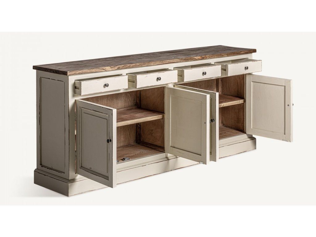Design příborníku zahrnuje kombinaci otevřených a uzavřených úložných prostorů. Horní část je vybavena skleněnými dvířky a policemi, které poskytují ideální místo pro vystavení krásného nádobí a dekorací. Dolní část obsahuje praktické zásuvky a skříňky pro uložení příborů, ubrusů a dalších kuchyňských potřeb. Patricie vyniká jemně zakřivenými detaily a klasickými úchytkami, které přidávají na jeho venkovském kouzlu a eleganci.